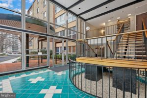Sussex House on Battery Lane is a small condo community with only 54 units on six floors.  There is lots of surface parking available for the residents. There are a variety of units in Sussex House, including 1 bedroom, 2 bedroom and 3 bedroom floor plans. Sussex House was built in 1974 so it is solidly built and very functional. You can expect large rooms with floor to ceiling windows in the living rooms and parquet floors through out.  The lobby is a stunning example of  mid-century architecture with its open staircase that seems to float in the air.  Unless the bathrooms have been redone, they have ceramic tile floors and traditional vanities. Many of the kitchens have been remodeled so granite countertops and stainless steel appliances are common.